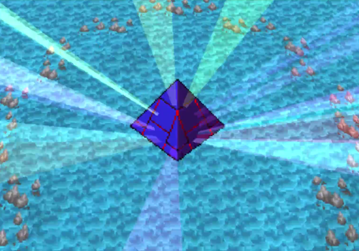 A quick flight to Bandore and a trip into the basement I used the gold key that I received earlier in the volcano dungeon. An odd quirk about the game is that some items like keys are single use, and others stay in your inventory making you wonder if they’re useful again. This key was, but after using it for this door I didn’t find another use for it. I now had the four ancient tablets and knew exactly what to do with them, which is a welcomed pleasantry in this game. Placing a tablet in one of the four islands caused a light beam to errupt from the temple towards the stone ring in the overworld map. After all four tablets were placed I was greeted with a cutscene of a futuristic glowing pyramid rising out of the sea! Another clear goal on where to go? I’ll take it!